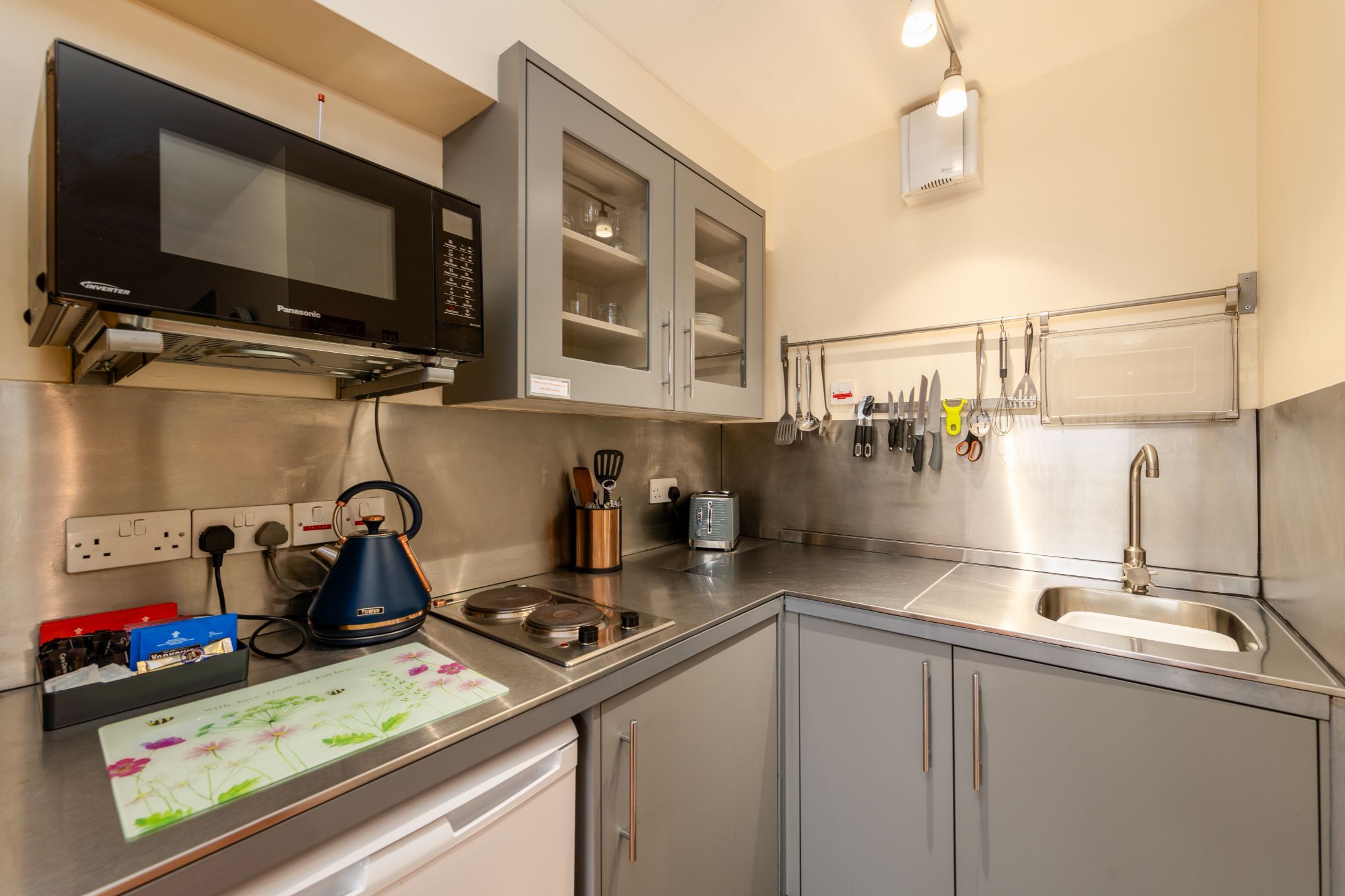 - Kitchen area with 2 ring electric hob, combination microwave/ grill/oven.